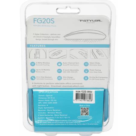 Мышь A4Tech Fstyler FG20S белый/серый оптическая 2000dpi silent беспров. USB для ноутбука 3but (FG20S USB WHITE)