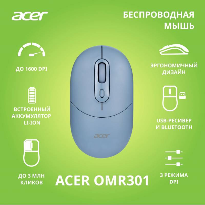 Мышь Acer OMR301 синий оптическая 1600dpi беспров. BT/Radio USB 4but (ZL.MCECC.01S)