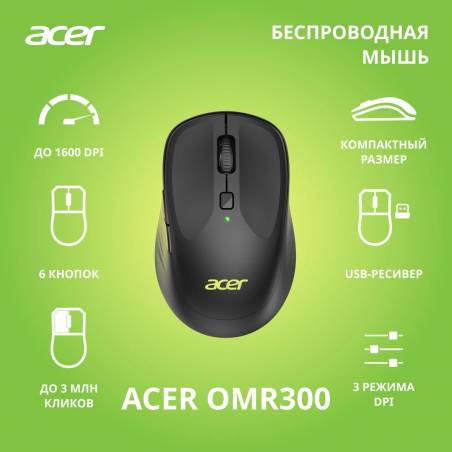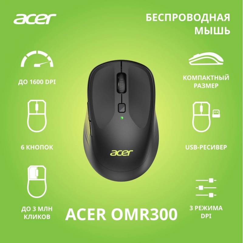 Мышь Acer OMR300 черный оптическая 1600dpi беспров. USB 6but (ZL.MCECC.01R)