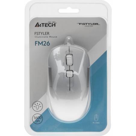 Мышь A4Tech Fstyler FM26 серебристый/белый оптическая 1600dpi USB для ноутбука 4but (FM26 USB (ICY WHITE))