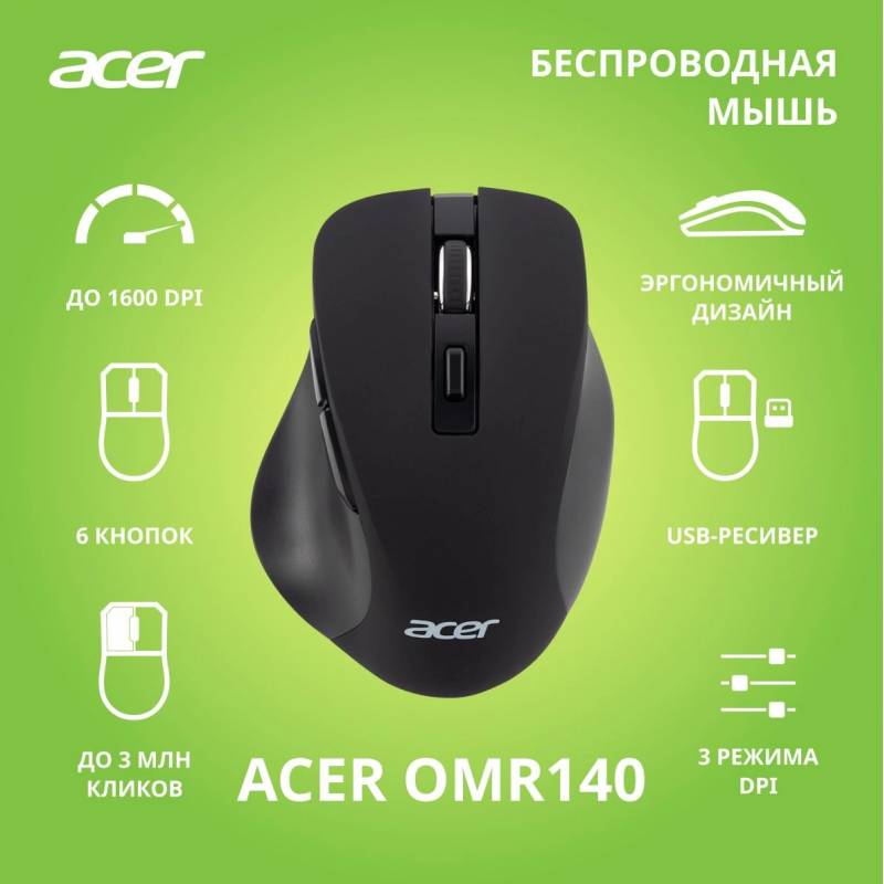 Мышь Acer OMR140 черный оптическая 1600dpi беспров. USB 6but (ZL.MCEEE.00G)
