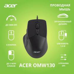 Мышь Acer OMW130 черный оптическая 3600dpi USB 6but (ZL.MCEEE.00J)