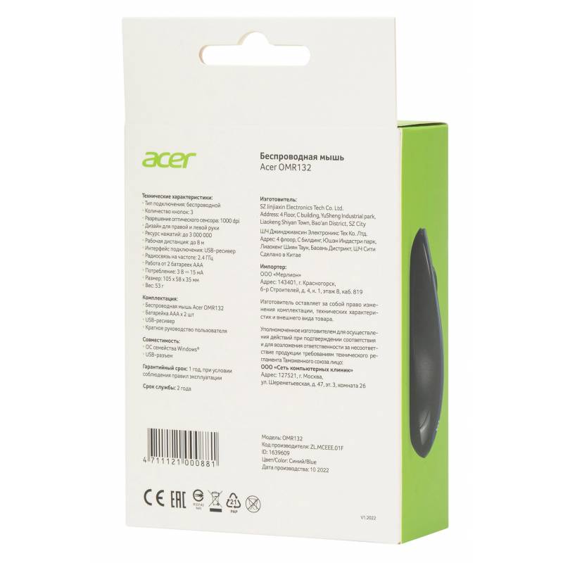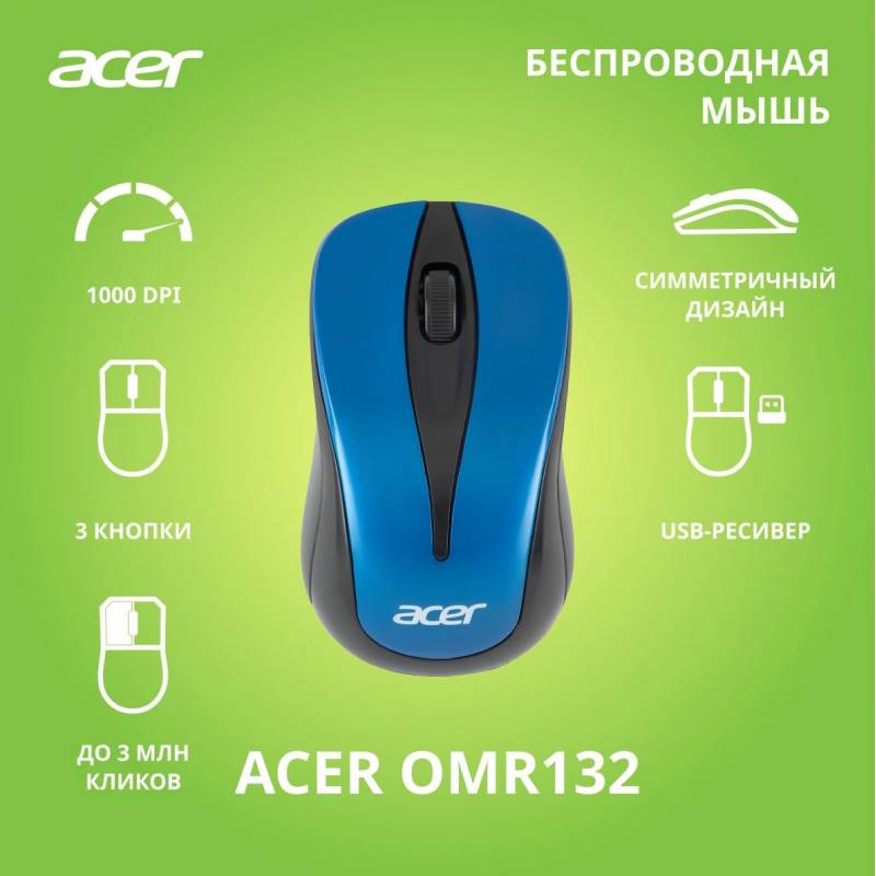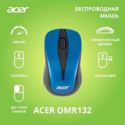Мышь Acer OMR132 синий/черный оптическая 1000dpi беспров. USB для ноутбука 3but (ZL.MCEEE.01F)