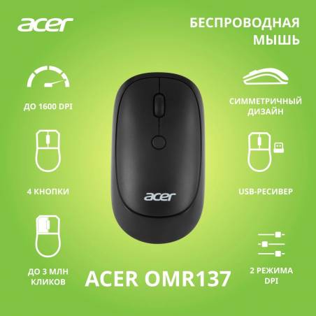 Мышь Acer OMR137 черный оптическая 1600dpi беспров. USB 4but (ZL.MCEEE.01K)