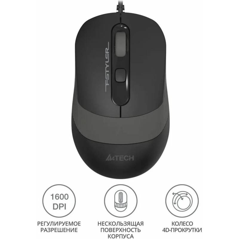 Мышь A4Tech Fstyler FM10S черный/серый оптическая 1600dpi silent USB 3but (FM10S USB GREY)