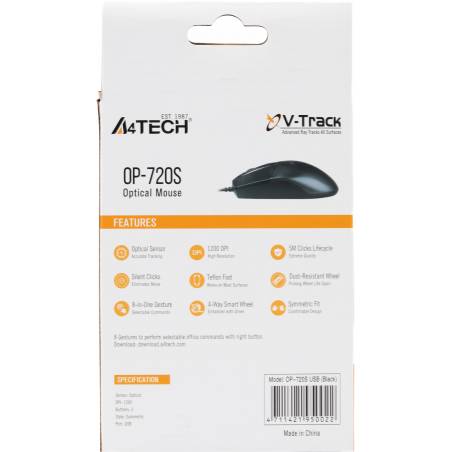 Мышь A4Tech OP-720S черный оптическая 1200dpi silent USB 2but
