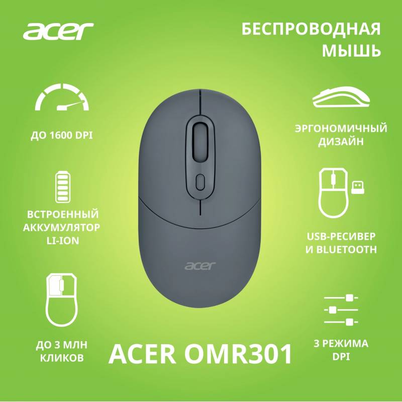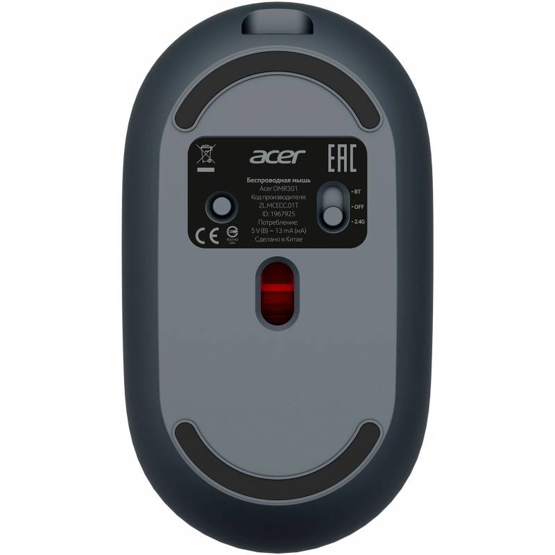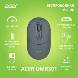 Мышь Acer OMR301 черный оптическая 1600dpi беспров. BT/Radio USB 4but (ZL.MCECC.01T)