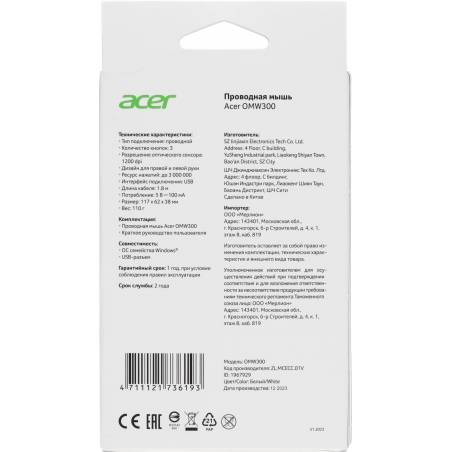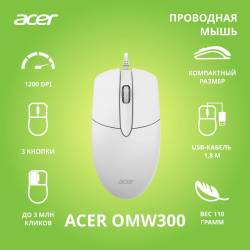 Мышь Acer OMW300 белый оптическая 1200dpi USB 3but (ZL.MCECC.01V)