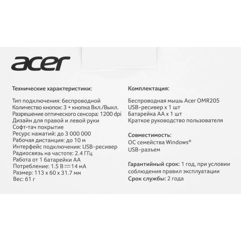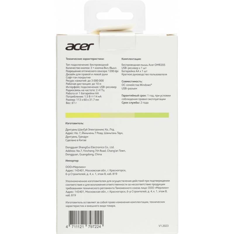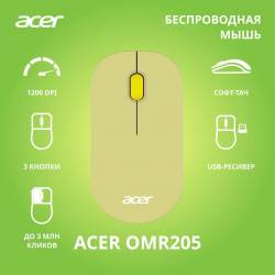 Мышь Acer OMR205 зеленый/желтый оптическая 1200dpi беспров. USB для ноутбука 3but (ZL.MCEEE.02J)