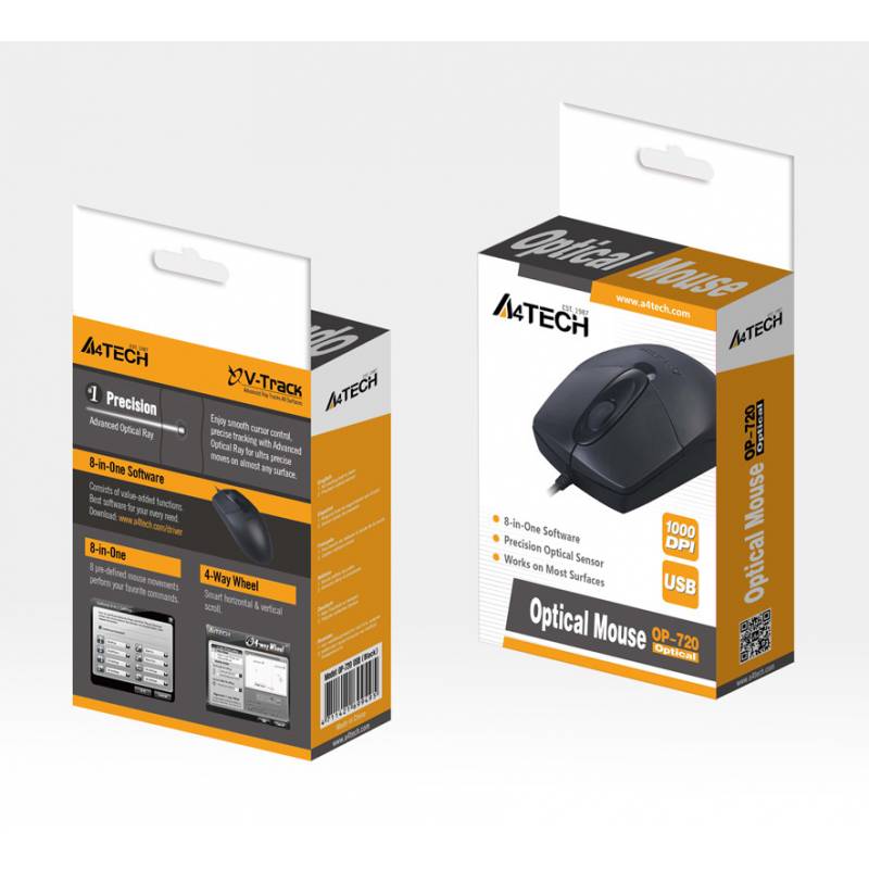 Мышь A4Tech OP-720 черный оптическая 1200dpi USB 3but (OP-720 USB (BLACK))