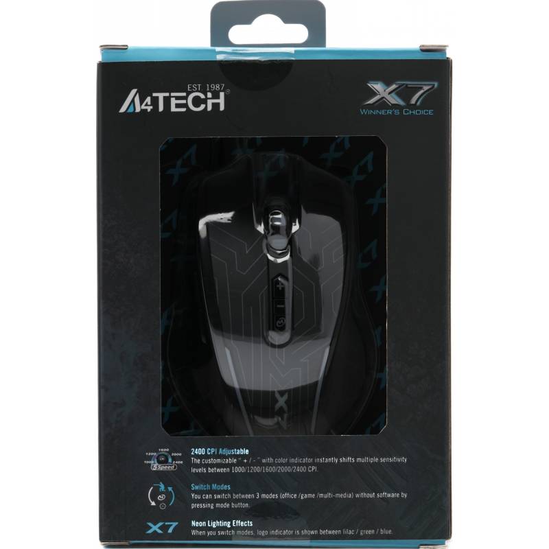 Мышь A4Tech X87 черный оптическая 2400dpi USB 8but (X87 (MAZE))