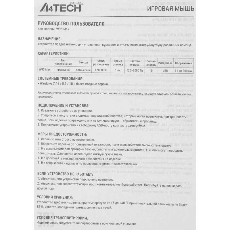 Мышь A4Tech Bloody W95 Max черный оптическая 12000dpi USB 6but (W95 MAX STONE BLACK)