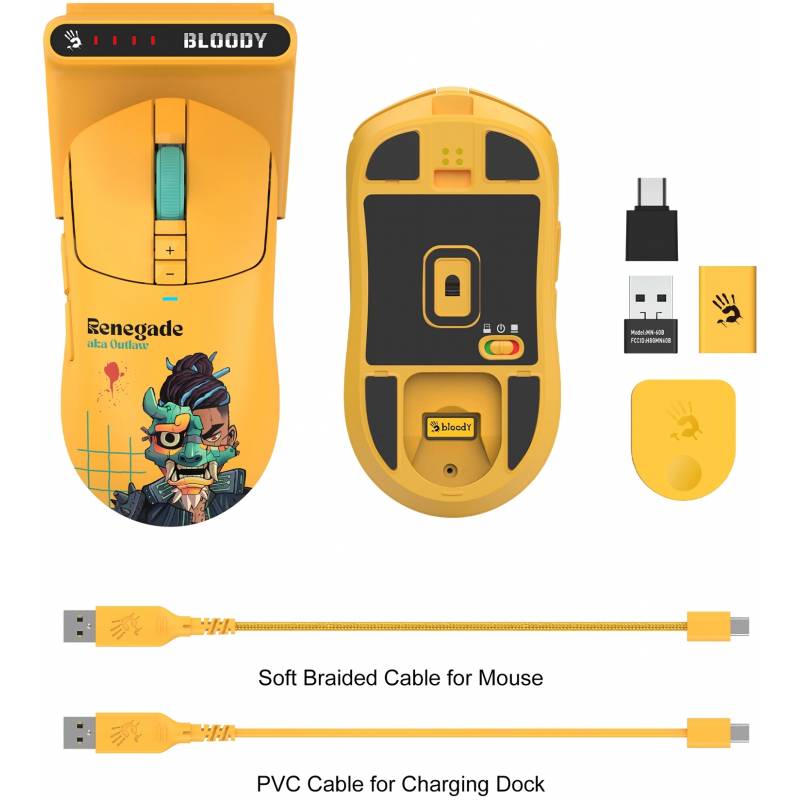Мышь A4Tech Bloody R72 Ultra Duo Renegade Sunset желтый/рисунок оптическая 20000dpi беспров. USB/USB-C 6but (R72 ULTRA DUO)