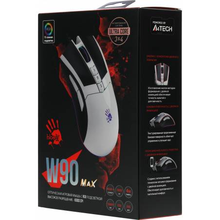 Мышь A4Tech Bloody W90 Max белый/черный оптическая 10000dpi USB 10but (W90 MAX PANDA)