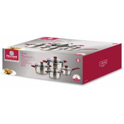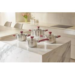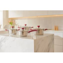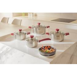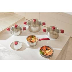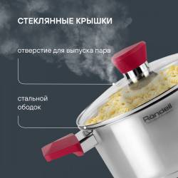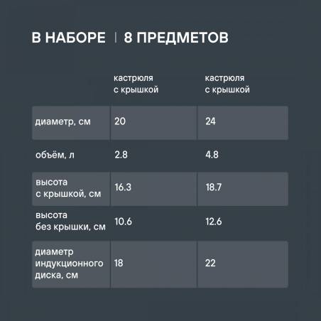 - Три кастрюли 18/20/24 см, ковш 16 см, со стеклянными крышками