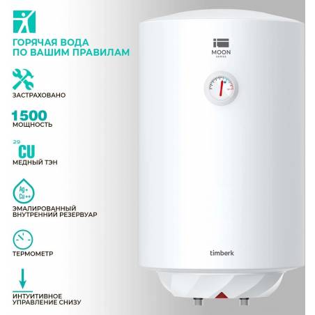 - Водонагреватель Timberk SWH RE17 прослужит действительно долго благодаря двойному слою стеклофарфоровой эмали, нанесенной «сухим» способом. Элегантный дизайн корпуса гармонично украсит любой интерьер. Интуитивное управление с механическим терморегулятором