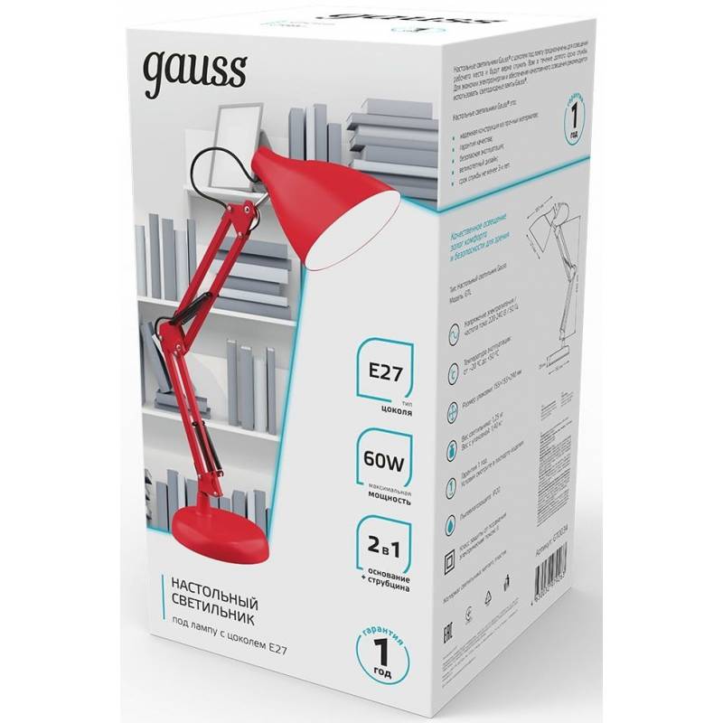 Светильник Gauss GTL003 (GT0034) настольный на струбцине/основание E27 красный 60Вт