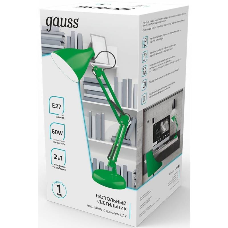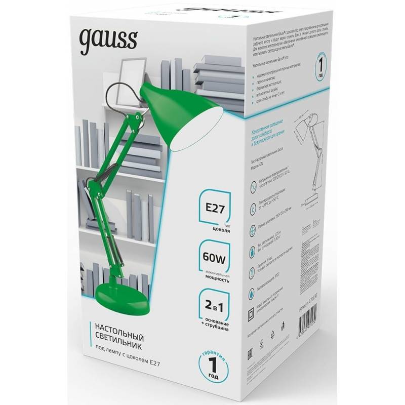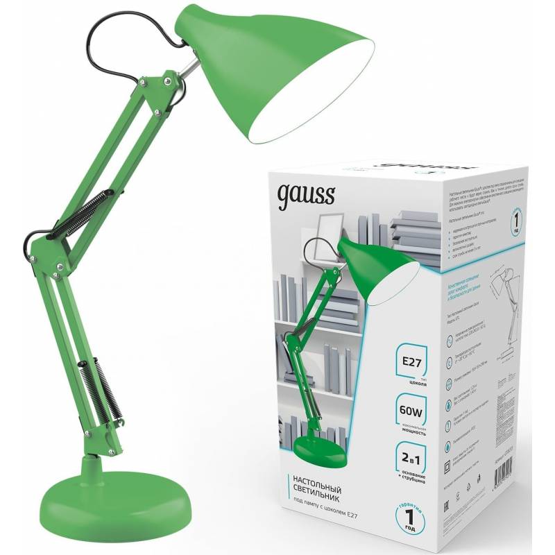 Светильник Gauss GTL003 (GT0033) настольный на струбцине/основание E27 зеленый 60Вт