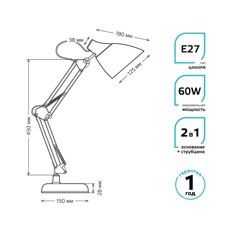 Светильник Gauss GTL003 (GT0035) настольный на струбцине/основание E27 желтый 60Вт