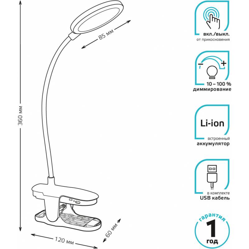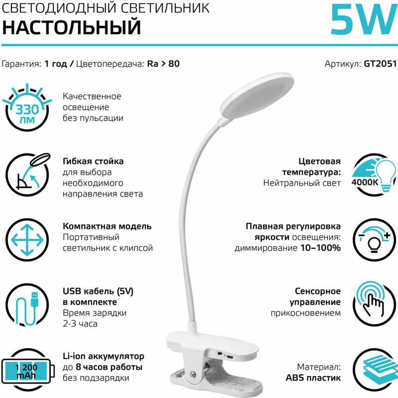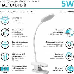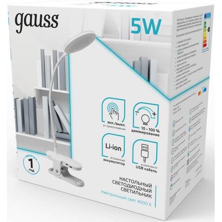 Светильник Gauss GTL205 (GT2051) настольный на прищепке LED белый/белый 5Вт