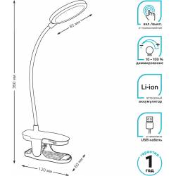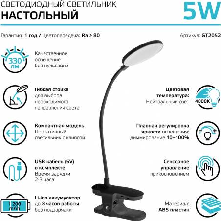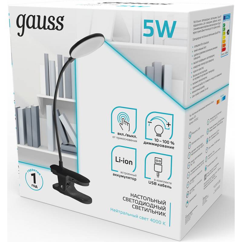 Светильник Gauss GTL205 (GT2052) настольный на прищепке LED черный 5Вт