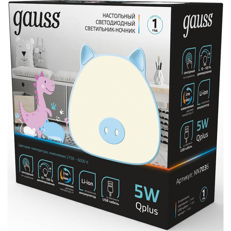 Ночник Gauss NN7036 поросенок голубой