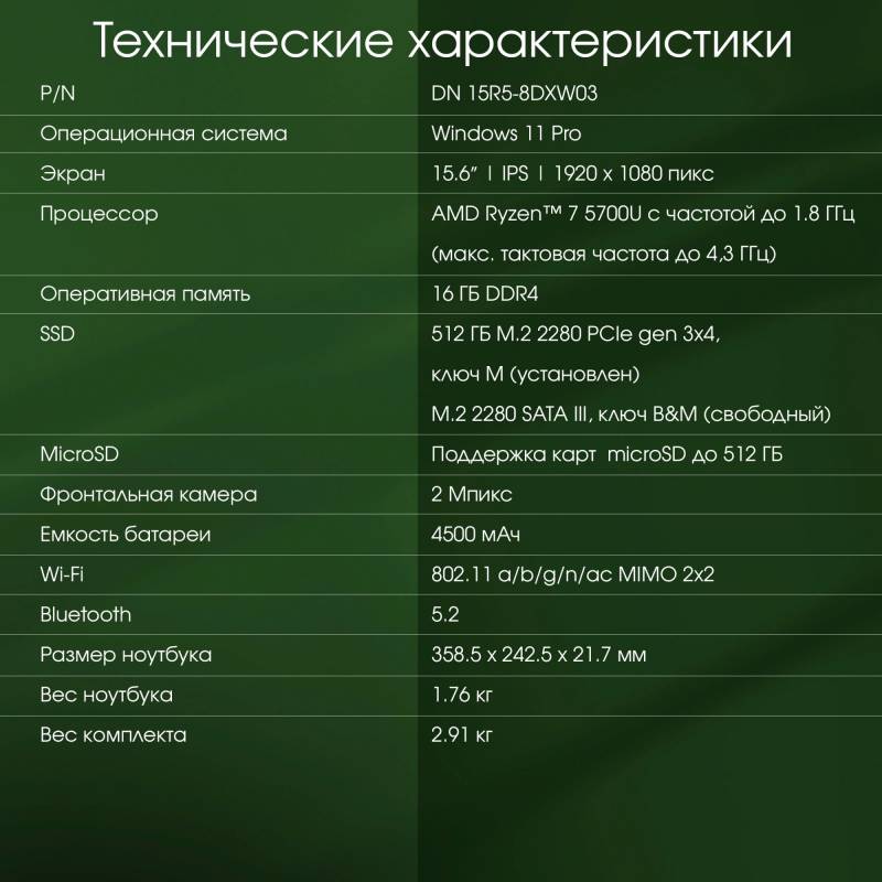 Ноутбук Digma Pro Breve Ryzen 7 5700U 16Gb SSD512Gb AMD Radeon 15.6" IPS FHD (1920x1080) Windows 11 Pro silver WiFi BT Cam 4500m