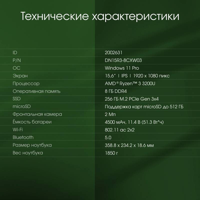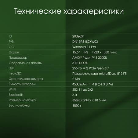- AMD Ryzen 3 3200U 2.6ГГц