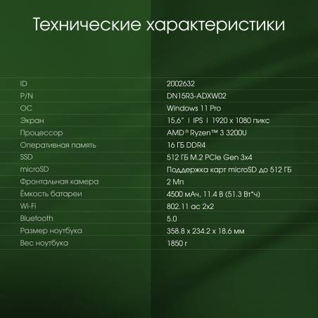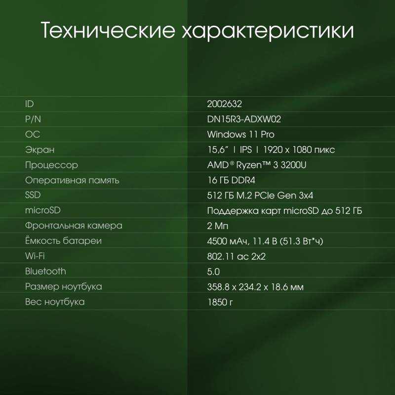 Ноутбук Digma Pro Parvus M Ryzen 3 3200U 16Gb SSD512Gb AMD Radeon Graphics 15.6" IPS FHD (1920x1080) Windows 11 Pro dk.grey WiFi