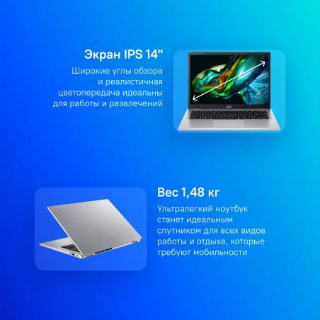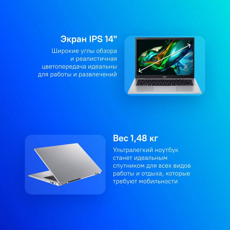 Ноутбук Acer Aspire 3 A314-42P-R3RD Ryzen 7 5700U 8Gb SSD1Tb AMD Radeon Graphics 14" IPS WUXGA (1920x1200) без ОС silver WiFi BT