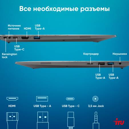 Ноутбук IRU Planio 15INP N-series N100 8Gb SSD256Gb Intel UHD Graphics 15.6" IPS FHD (1920x1080) Windows 11 Pro Multi Language 6