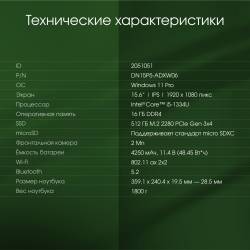 Ноутбук Digma Pro Fortis M Core i5 1334U 16Gb SSD512Gb Intel UHD Graphics 15.6" IPS FHD (1920x1080) Windows 11 Pro grey WiFi BT