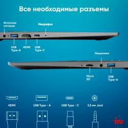 Ноутбук IRU Tactio 14ALH Core i3 1215U 8Gb SSD256Gb Intel UHD Graphics 14" IPS FHD (1920x1080) Windows 11 Pro Multi Language 64
