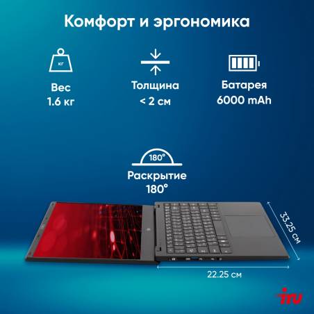 Ноутбук IRU Planio 14ING N-series N100 8Gb SSD256Gb Intel UHD Graphics 14" IPS FHD (1920x1080) Windows 11 Pro Multi Language 64