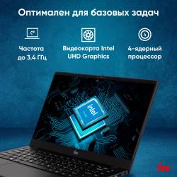 Ноутбук IRU Planio 14ING N-series N100 8Gb SSD512Gb Intel UHD Graphics 14" IPS FHD (1920x1080) Windows 11 Pro 64 black WiFi BT C