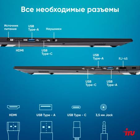 Ноутбук IRU Planio 15ING N-series N100 8Gb SSD512Gb Intel UHD Graphics 15.6" IPS FHD (1920x1080) Windows 11 Pro 64 black WiFi BT