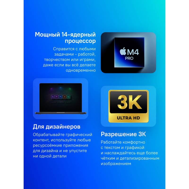 - Apple M4 Pro 14 core 4ГГц