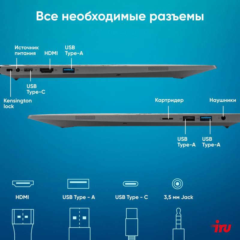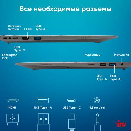 Ноутбук IRU Planio 15INPR N-series N100 16Gb SSD512Gb Intel UHD Graphics 15.6" IPS FHD (1920x1080) Windows 11 Pro grey WiFi BT C