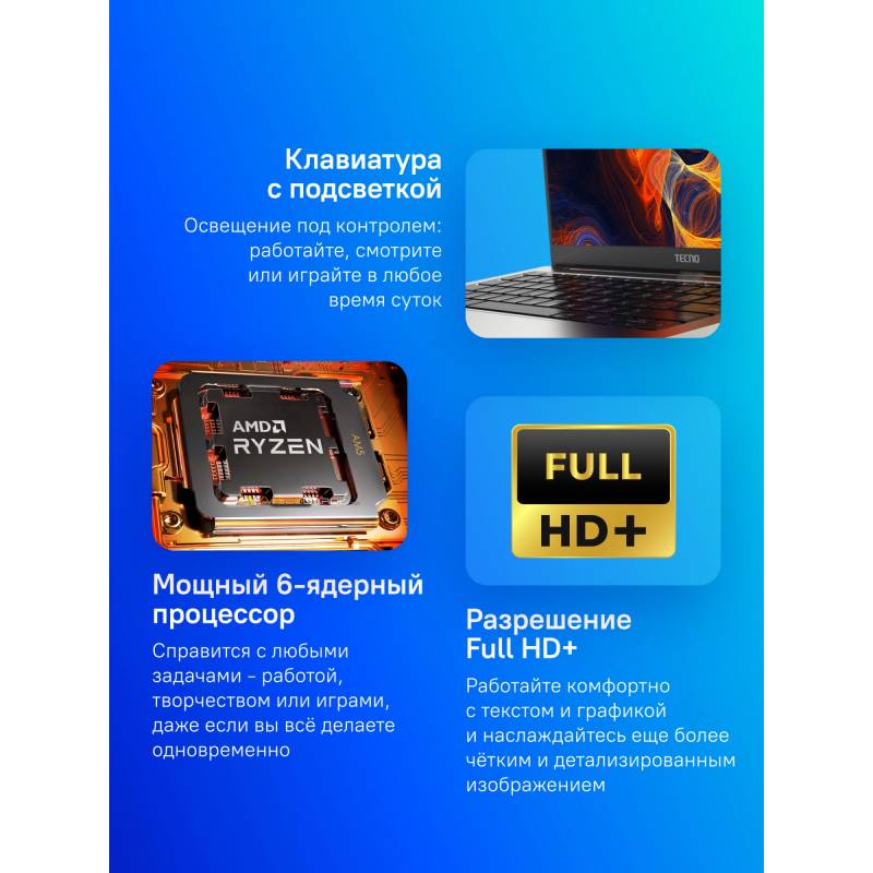 Ноутбук Tecno MegaBook T14DA Ryzen 5 7430U 16Gb SSD512Gb AMD Radeon Graphics 14.1" IPS WUXGA (1920x1200) Windows 11 Home grey Wi