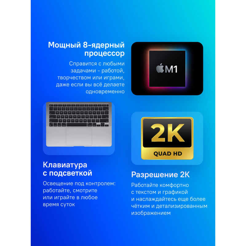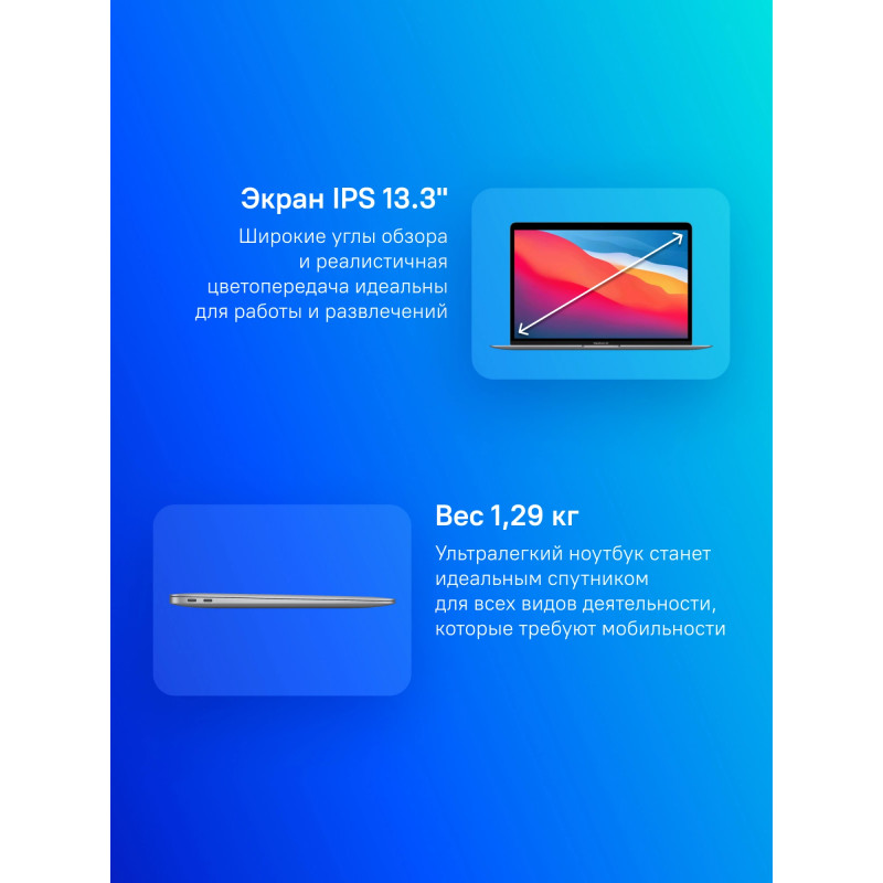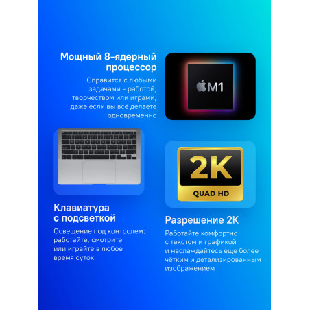 Ноутбук Apple MacBook Air A2337 M1 8 core 8Gb SSD256Gb/7 core GPU 13.3" IPS (2560x1600) macOS grey space WiFi BT Cam (MGN63HN/A)