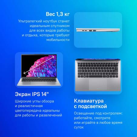 Ноутбук Acer Swift Go 14 SFG14-73-54WC Core Ultra 5 125H 16Gb SSD1Tb Intel Arc 14" IPS WQXGA+ (2880x1800) Windows 11 Home silver