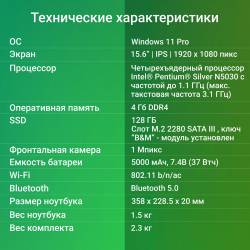 Ноутбук Digma EVE P5416 Pentium Silver N5030 4Gb SSD128Gb Intel UHD Graphics 605 15.6" IPS FHD (1920x1080) Windows 11 Pro silver