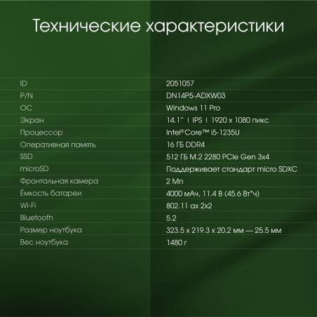 Ноутбук Digma Pro Fortis M Core i5 1235U 16Gb SSD512Gb Intel Iris Xe graphics 14.1" IPS FHD (1920x1080) Windows 11 Pro grey WiFi