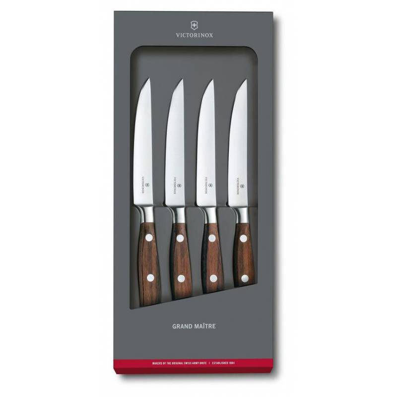 - Нож Grand Maitre Steak Knife из серии кованых ножей Victorinox, сочетающий красивую форму с высокой функциональностью, равномерно закаленное и идеально сбалансированное.