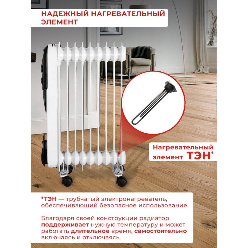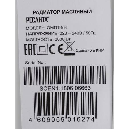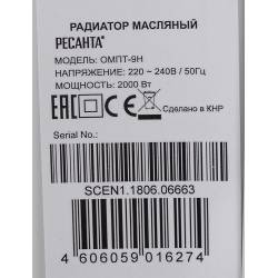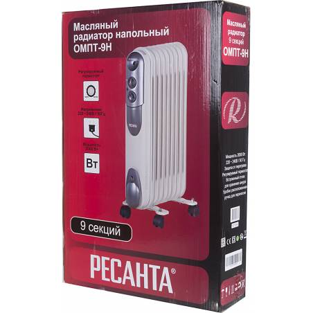 Радиатор масляный Ресанта ОМПТ- 9Н 2000Вт белый