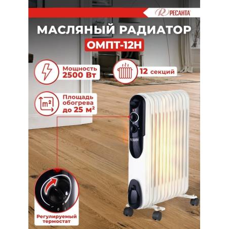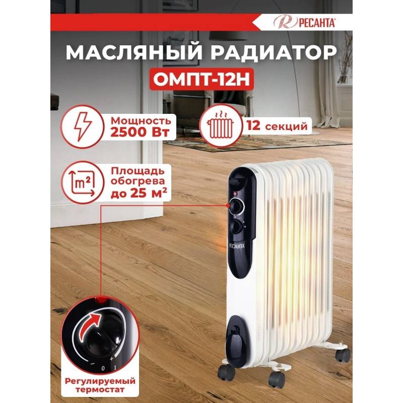 Радиатор масляный Ресанта ОМПТ-12Н 2500Вт белый