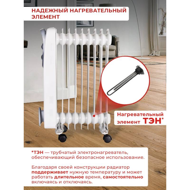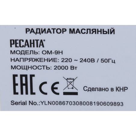 Радиатор масляный Ресанта ОМ-9Н 2000Вт белый