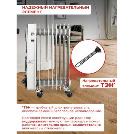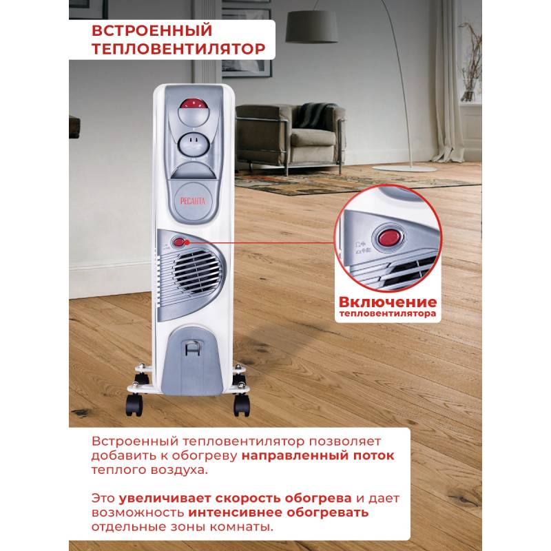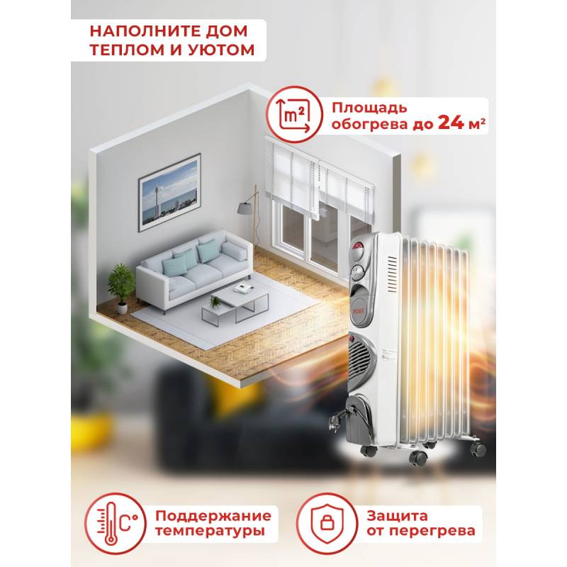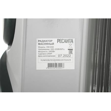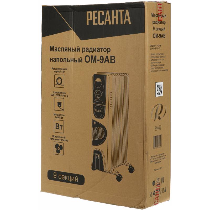 Радиатор масляный Ресанта ОМ-9АВ 2400Вт белый