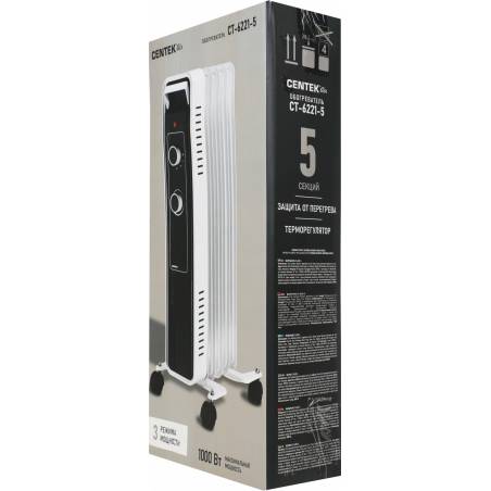 Радиатор масляный Centek CT-6221-5 1000Вт белый