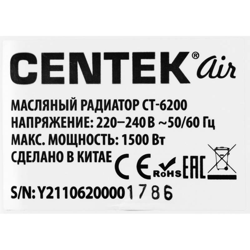 Радиатор масляный Centek CT-6200 1500Вт белый